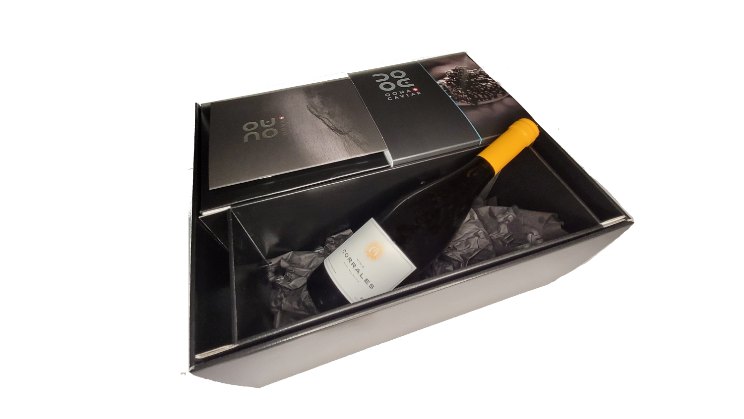 Ce coffret cadeau exclusif réunit le noble caviar Oona N°103 - traditionnel et le puissant Viña Corrales Fino. Le caviar convainc par son arôme de noix et son grain délicat, tandis que le sherry s'harmonise parfaitement avec son intensité et sa fraîcheur. Une expérience unique d'élégance et de finesse.